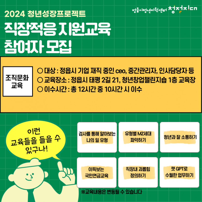 [2024 청년성장프로젝트- 직장적응지원교육]!!!