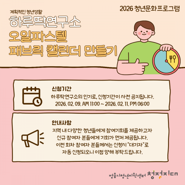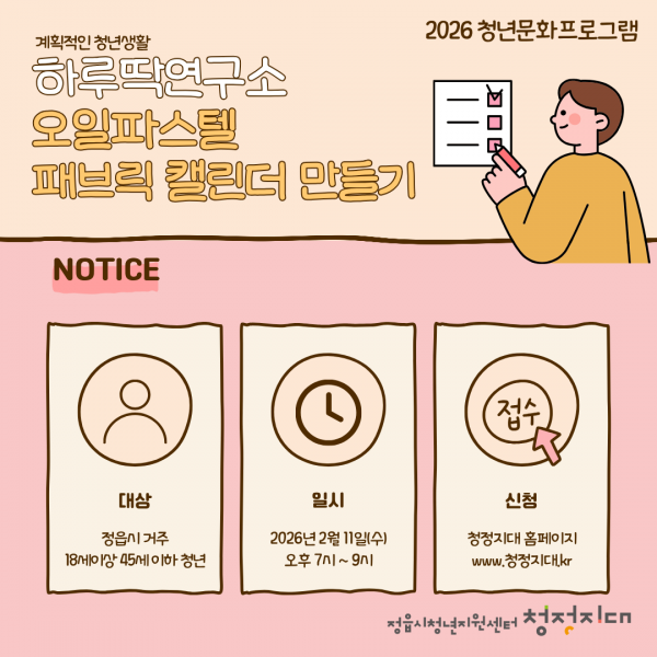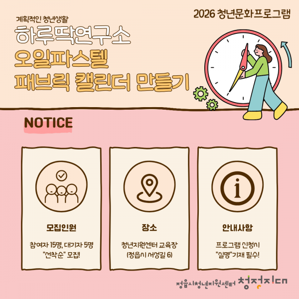 ♥ 대상 : 정읍시 거주 18세~45세 청년 선착순 15명 / 대기자 5명 모집