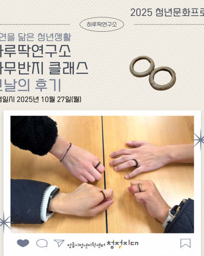 안녕하세요 !정읍시 청년지원센터♥청정지대입니다♥지난 10월 27일 월요일에 진행되었던청년문화프로그램 하루딱연구소나무반지 클래스♥그날의 후기를 함…