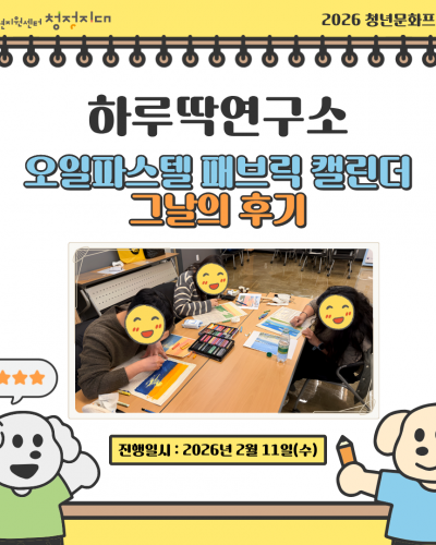 안녕하세요 !정읍시 청년지원센터청정지대입니다 :)지난 2월 11일 수요일에 진행되었던청년문화프로그램 하루딱연구소오일파스텔 패브릭 캘린더 만들기&…