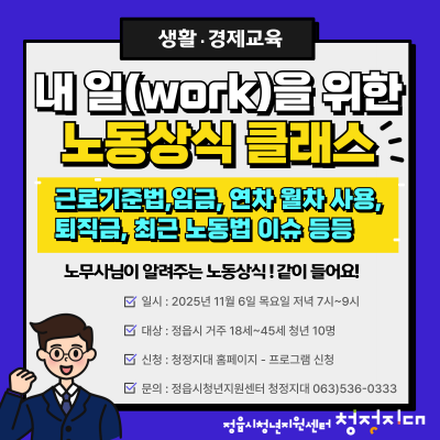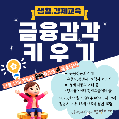 안녕하세요정읍시청년지원센터 청정지대입니다 :-)청정지대에는 '2025청년 커뮤니티 활동지원사업'에 참여하고 있는 5개의 동아리와 5개의 단체가 …
