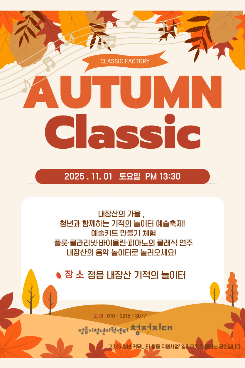 | 제목 | 2025 청년 커뮤니티 활동 지원사업'의 참여팀인 '클래식팩토리'팀 공연 및 체험 안내 |