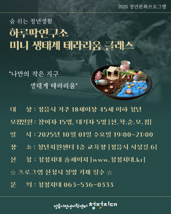 ♥ 대상 : 정읍시 거주 18세~45세 청년 선착순 15명 / 대기자 5명 모집