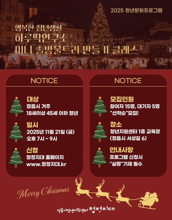 | 장소 | 청년지원센터 1층 교육장 [정읍시 서성길 6] |