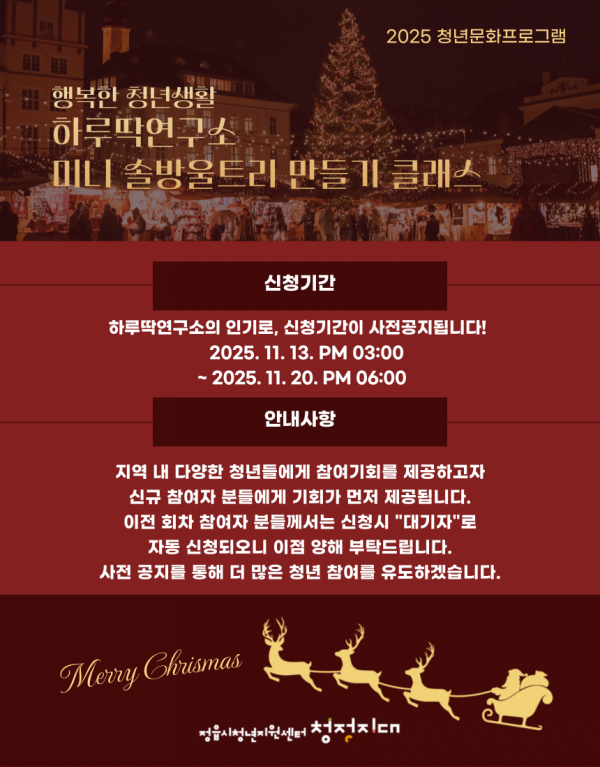♥ 신청기간 : 2025년 11월 13일 오후 3시 ~ 2025년 11월 20일 오후 6시